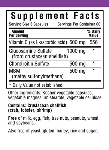 Specially formulated with a special combination of pure glucosamine sulfate, chondroitin sulfate, OptiMSM and active form of sulfur plus vitamin C