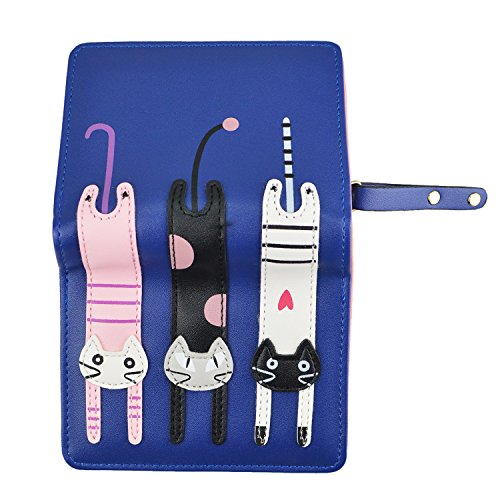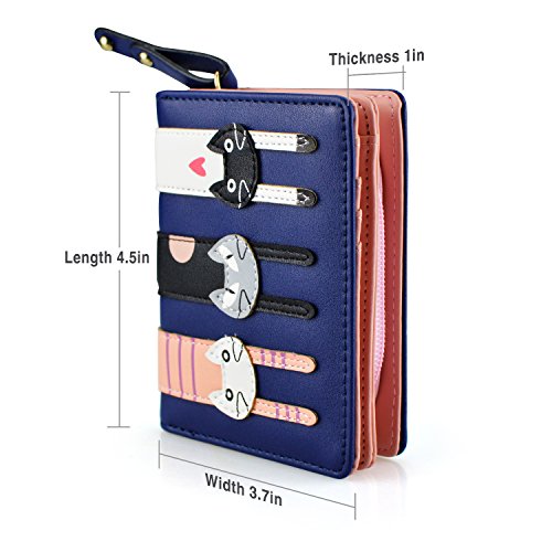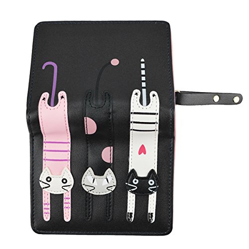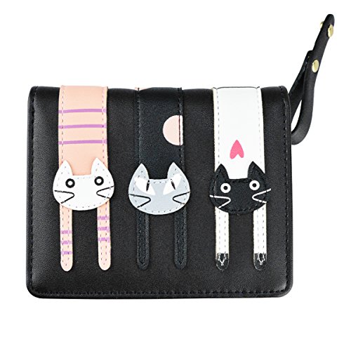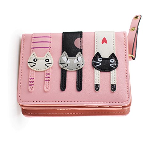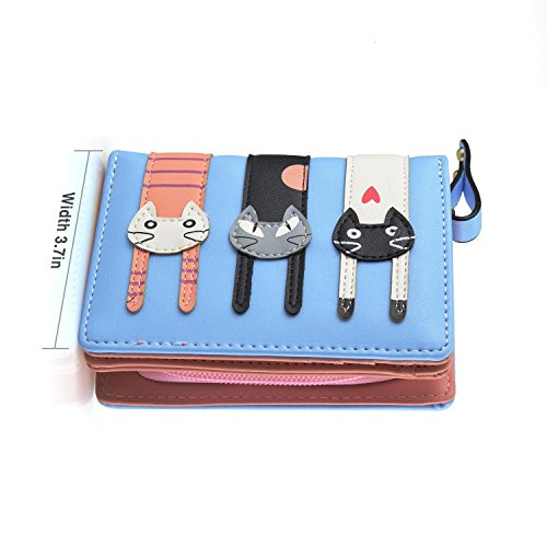 Girl's Short Cute 3 Cats Purse, Buckle Zipper Cartoon Wallet, Small Clutch Handbag