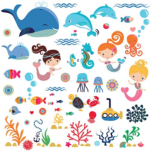 Mermaids Decorative Peel & Stick Wall Art Sticker Decals for Kids Room or Nursery