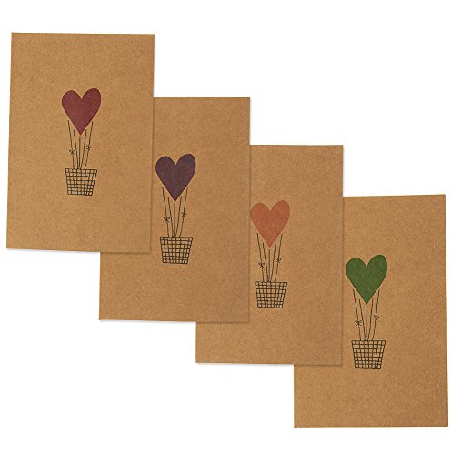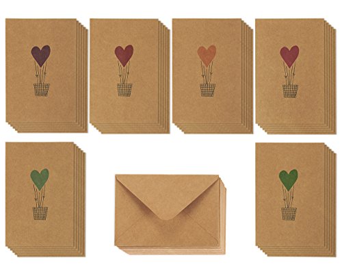 36 Brown Kraft Paper Greeting Cards - 6 Colorful Heart Air Balloon Designs, Kraft Paper Envelopes Included - 4 x 6 Inches