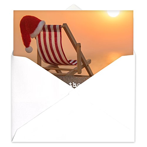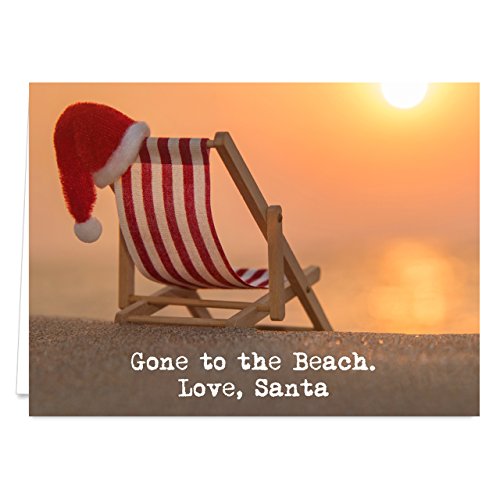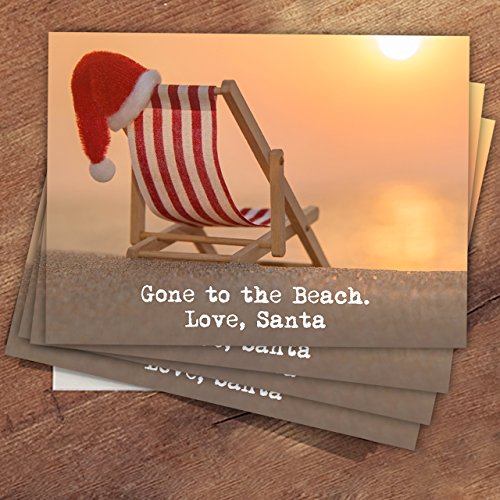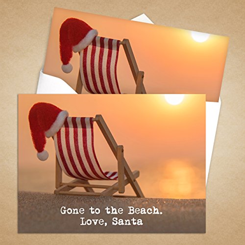 Santa at the Beach Holiday Card Pack - Set of 25 cards - 1 design, versed inside with envelopes