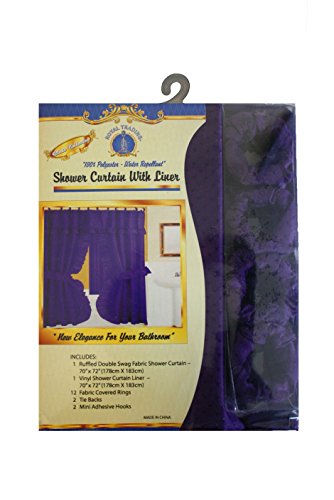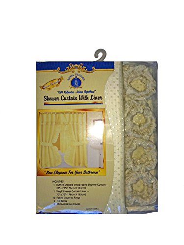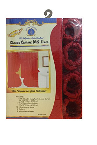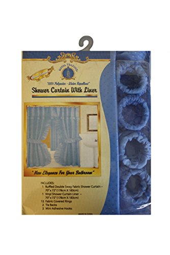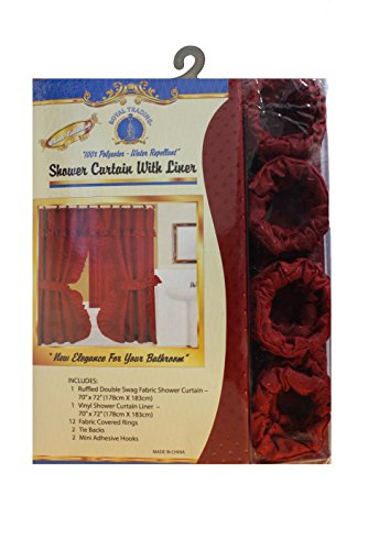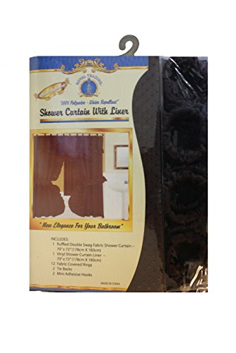 Double Swag Shower Curtain with PVC Liner, Hooks and Tiebacks-Brown. Double swag shower curtain with liner and 12 plastic shower rings covered with plastic