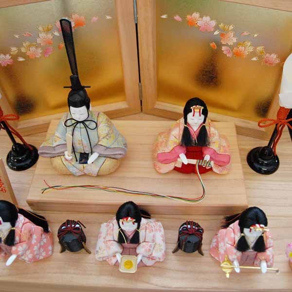 ・台座・屏風等には落ち着いた色目の雛人形セット。