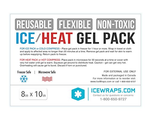 Make this multipurpose gel pack a part of your health and personal care. These gel packs are commonly used as chiropractic ice packs for pain relief in clinics. The all-purpose reusable hot cold pack is incredibly versatile and safe to use at home especially following sports activities, workouts, or surgical procedures. The low-profile gel ice pack stays soft and pliable when frozen and double as hot pack when heated. Our gel pack is non-toxic and more durable than other brands. Make sure to add IceWraps' soft ice gel pack as a part of your first aid care.