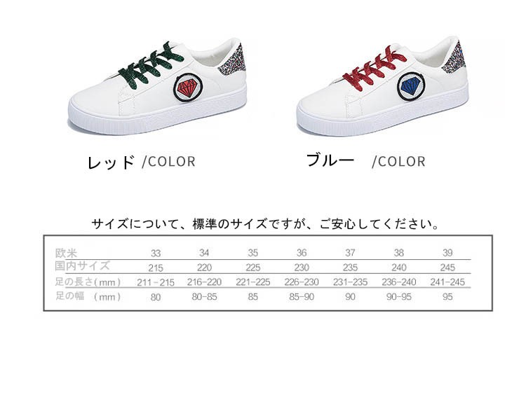 材質:PU+ゴム 色:レッド、ブルーヒールの高さ:2.5cm約 サイズについてEU36=22.5cm EU36=23cm EU37=23.5cm EU38=24cm EU39=24.5cm EU40=25cm注意:※ サイズなど、商品詳細を必ずご確認後、ご了承頂いた上でご購入をお願いします。また、採寸方法違いにより、0.5~1cmの誤差がございますので、ご了承ください。商品内容:1xスニーカー特徴:【軽量、通気性よい】ゴムのソールとキャンパスの材質でスポーツシューズならではの軽さを実現し、通気性もよいです。どんな季節でも着用します。 軽量なので、ランニングや歩くや他の運動が易くになりました。【ファッションな配色】ファッションな配色で、シューズがファッションになり、女性に最適です。中学生などに通学靴としてもよい選択です。 【ゴムのソール耐滑】柔らかい材質で作って、ゴムのソールので、耐滑のです。スムーズな足運びをサポートします。球技や他の運動にもスムーズになりました。【利用場合】スポーツだけでなく、通勤や通学やアウトドア、普段履きとしても カジュアルなコーディネートをお楽しみい ただけます。