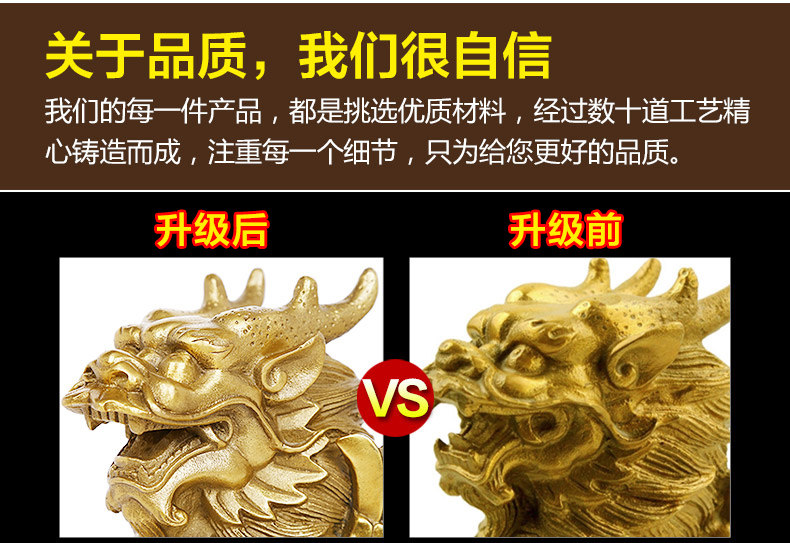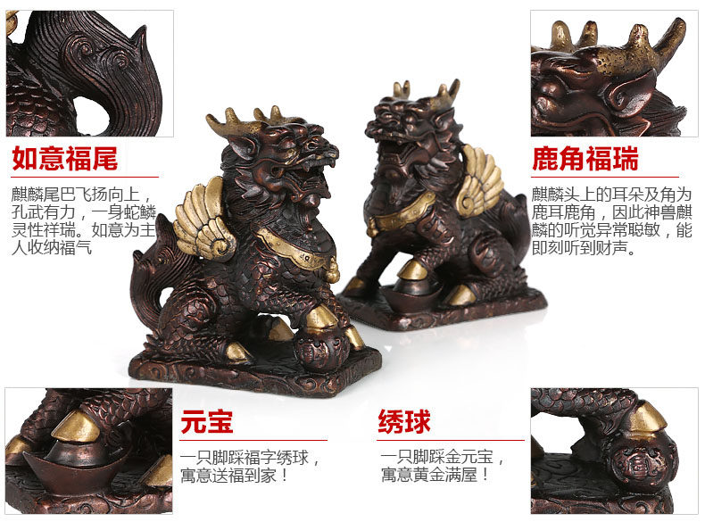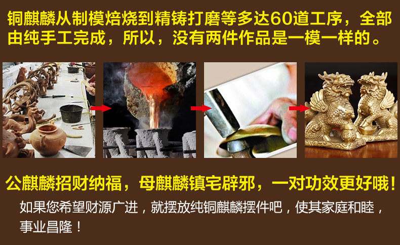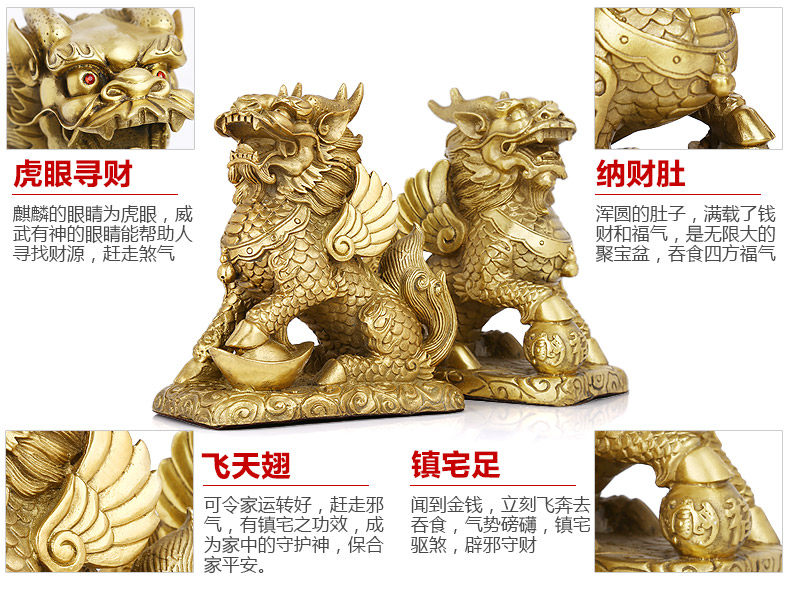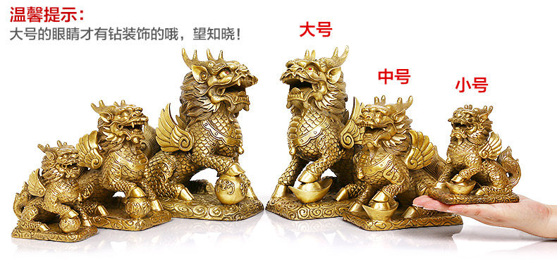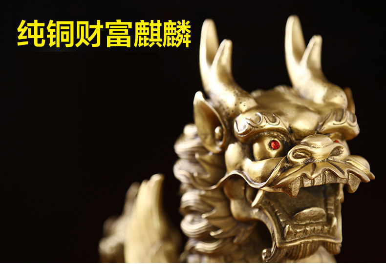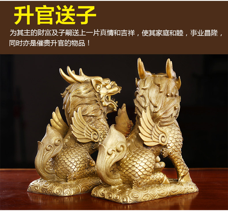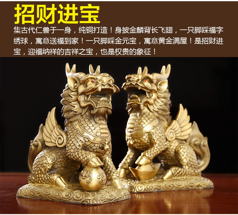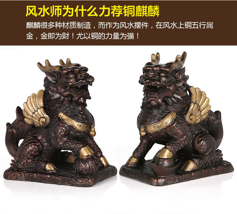 上善若水 大号开光纯铜麒麟摆件一对送子招财风水家居工艺品2964