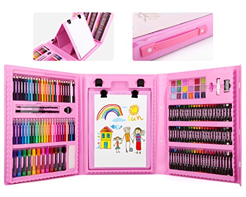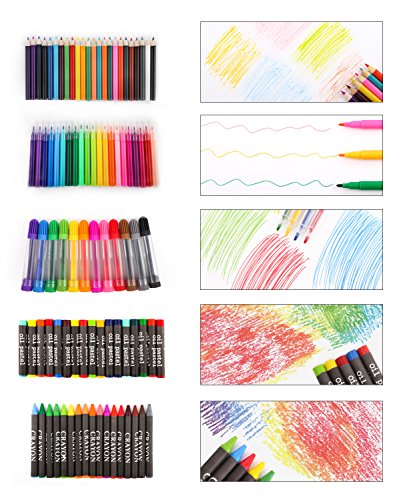 176 Pcs Art Set, Zooawa Sketching and Drawing Handle Art Box with Oil Pastels, Crayons, Colored Pencils, Markers, Paint Brush, Watercolor Cakes, Sketchpad for Kids and Toddlers - Colorful