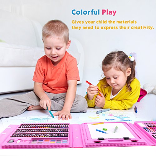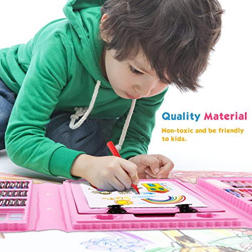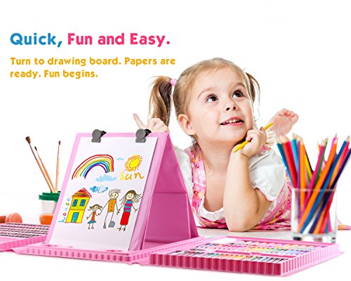 - PORTABLE FUN - A large trifold organizer case with handle for more convenient carrying. A reversible sketch pad for two kids to use simultaneously.