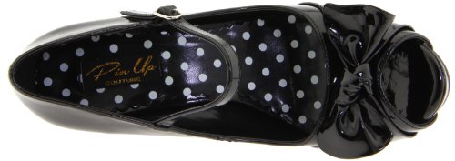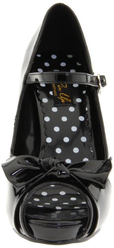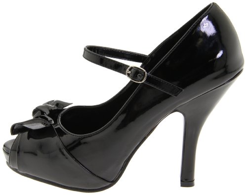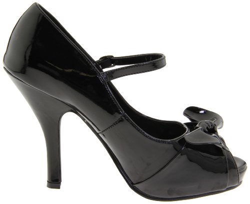 Product DescriptionBrand: PINUP COUTURE; design: CUTIEPIE-08; Size-Range: 5-11; Color: Blk Pat; Material: Blk Pat; 4 1/2" Heel, 3/4" Hidden P/F Open Toe Mary Jane W/ Bow