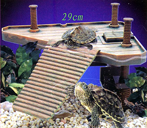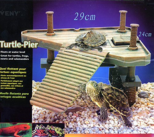 Textured ramp allows for easy access to the basking platform. Includes 8 extension pylons to adjust height of the pier up to 11 1/2 inches(29cm)tall. Fits most medium and larger tanks and looks like a real pier!