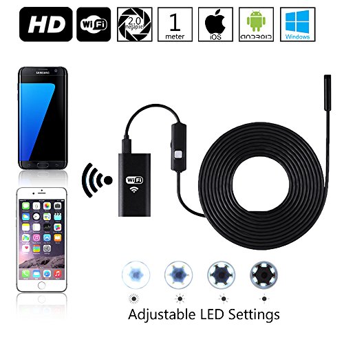 Wireless Endoscope Depstech WiFi Borescope Inspection Snake Camera | 2.0 Megapixels HD | 1m (3.5 Ft) | for Android & iOS SmartPhone iPhone Samsung Tablet& - Black