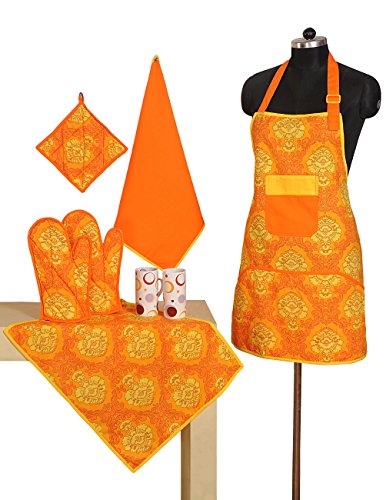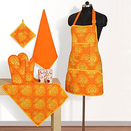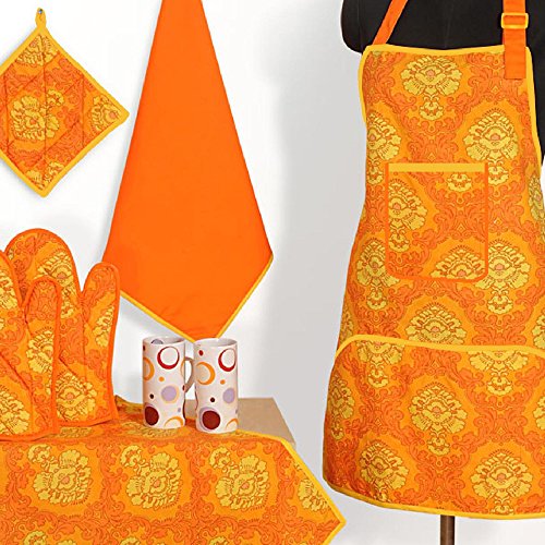 Patterned Cotton Chef's Apron Set with Pot Holder, Oven Mitts & Napkins - Perfect Home Kitchen Gift or Bridal Shower Gift