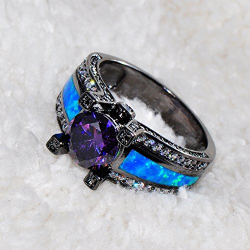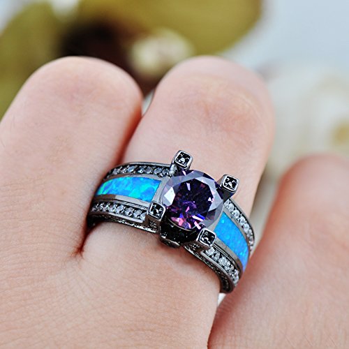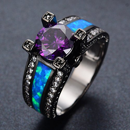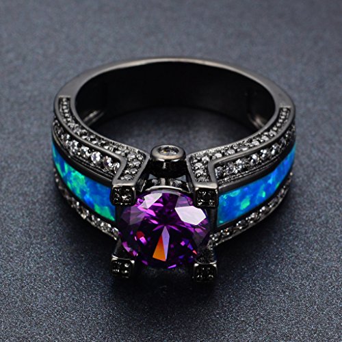 -. Title : Rongxing Jewelry Purple Amethyst Black Gold Filled Opal Rings for Women Size 5-10