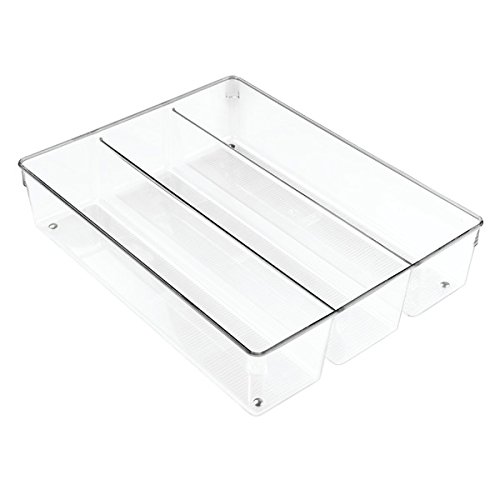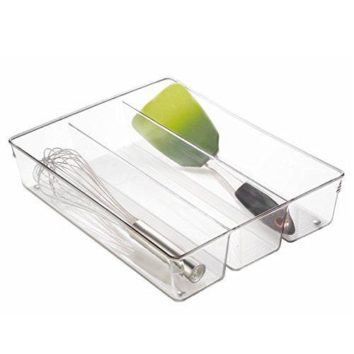 mDesign Kitchen Drawer Organizer for Silverware, Spatulas, Gadgets - 13.8" x 10.5" x 3", Clear