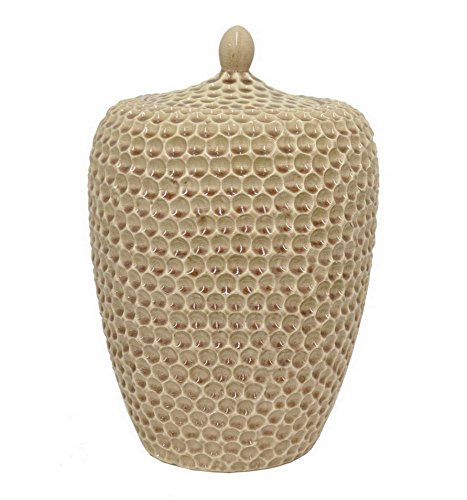 Benzara HRT-64739 Not Applicable 19" Taupe Ceramic Jar with Lid