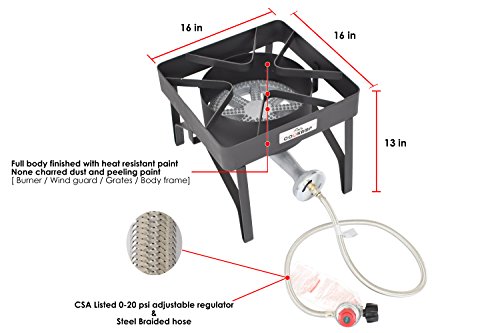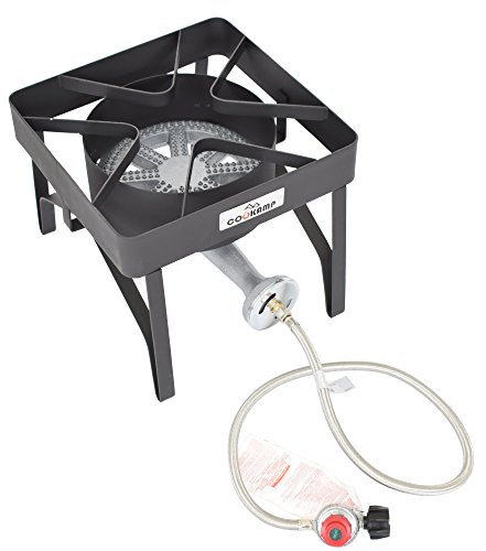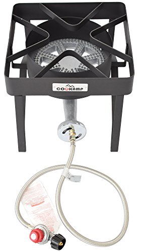 COOKAMP High Pressure Banjo 1-Burner Outdoor Propane Gas Cooker with 0-20 PSI Adjustable Regulator and Steel Bradied Hose [ 2018 New Model ] SA1250