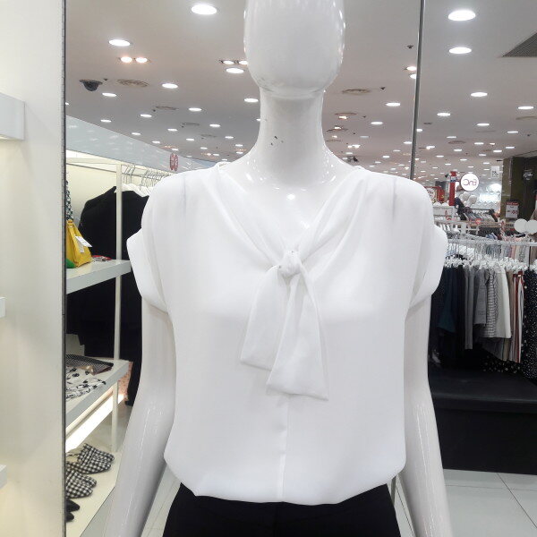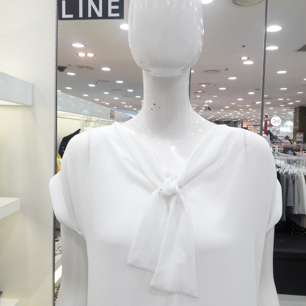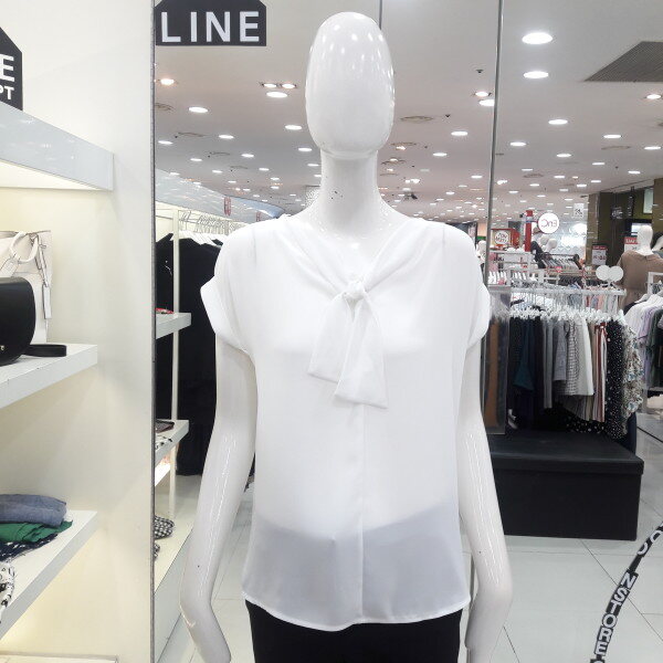 18년 여름 신상 여성스러운 기본 블라우스입니다 네크라인 리본포인트가 사랑스러우며 러블리한 분위기입니다 슬랙스 스커트에 단정하게 연출하기 좋아요