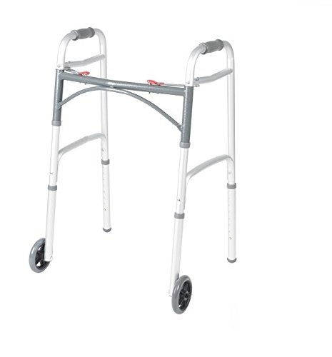 Walker Deluxe Folding 2 Button with Front 5" Wheels By Healthline Trading