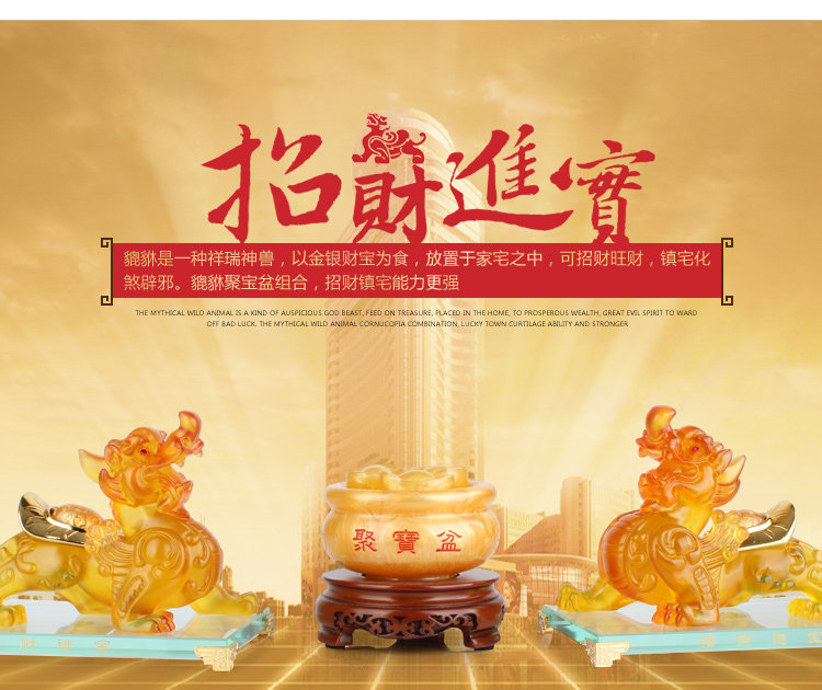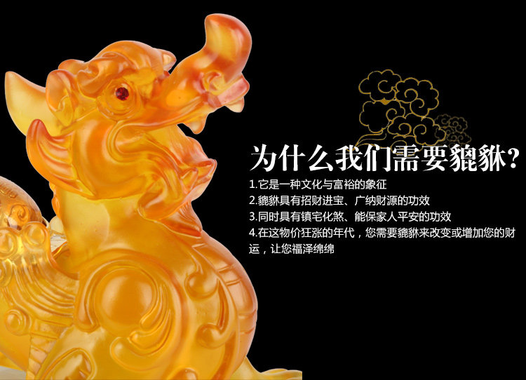 产品介绍: 貔貅 貔貅是一种祥瑞神兽,以金银财宝为食,放置于家宅之中,可招财旺财,镇宅化煞辟邪。 【招财旺财】 貔貅纳食四方之财。传说助黄帝作战有功,被赐封“天禄兽”又称“辟邪”。 【镇宅辟邪】 貔貅护主心强,有镇宅辟邪之用。摆放貔貅可令家运好转、好运加强! 【化解五黄大煞】 用来化煞镇宅和旺财,尤其在财运方面,貔貅是有较明显作用的。古贤认为,命是注定的,但运程可以改变,故民间有“一摸貔貅运程旺盛,再摸貔貅财运滚滚,三摸貔貅平步青云 ”的美好祝愿。 黄玉 黄玉可作为研磨材料,也可作仪表轴承。透明且漂亮的黄玉属于名贵的宝石。黄玉是一种色彩迷人、漂亮又便宜的中档宝石,深受人们喜爱。国际上许多国家定黄玉为“十一月诞生石”,是友情、友谊和友爱的象征。 1、辟邪作用黄玉可以作为护身符佩带,能辟邪驱魔,使人消除悲哀,增强信心。 2、吸收人体的负能量玉含有很多浮游的电子云,可以吸取人体的阴气,却不会如水晶般不会释放。电子云长期接触人体,吸取人体电磁场后,会生成静电,令接触的人有触电的觉。 3、 提高记忆力玉常被推荐给那些记忆力差、创造力有障碍、思维紊乱、声音颤弱,缺乏勇气的人。 4、增强循环、呼吸系统的健康玉也可舒援紧张、烦躁情绪,保特心境平静。若用于治疗方面, 5、玉有助于心轮附近器官的健康,即心、肺等,促进循环系统和呼吸器官的健康。 6、化解小人具有调合两种极端能量的功能,有化解小人的作用,最适合合伙事业、亲子沟通、长官部属、情侣、夫妻间的沟通宝石。