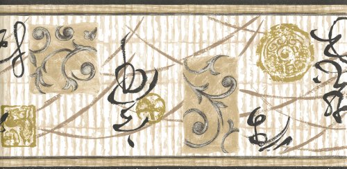 -. Title : Wallpaper Border Designer Modern Asian Symbols Black Cream Metallic Gold