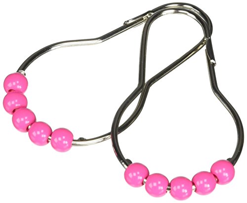 Uxcell Cucurbit Shaped Roller Shower Curtain Ring Hooks Hangers, Pink, 12 Piece