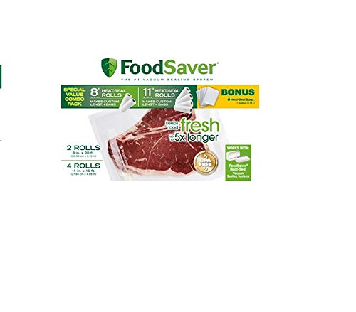 Box has four 11-inch-by-16-foot rolls, two 8-inch-by-20-foot and 6 - Gallon bags of plastic bagging material