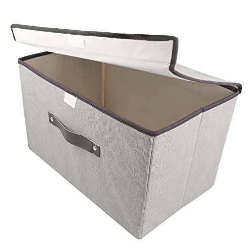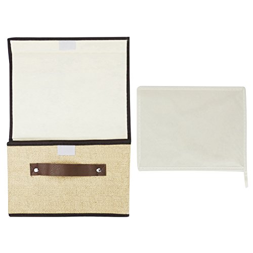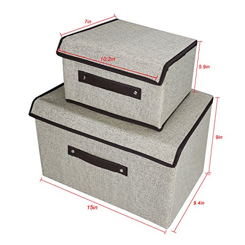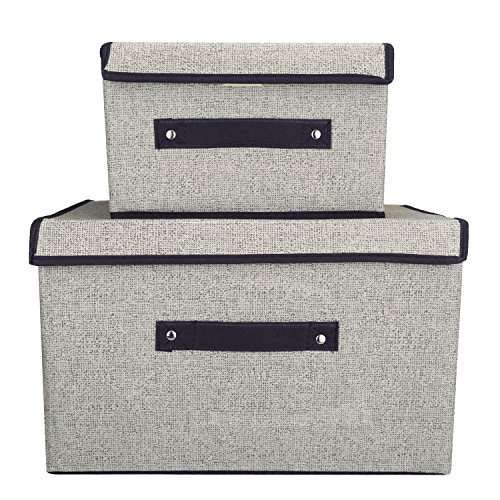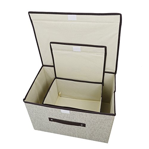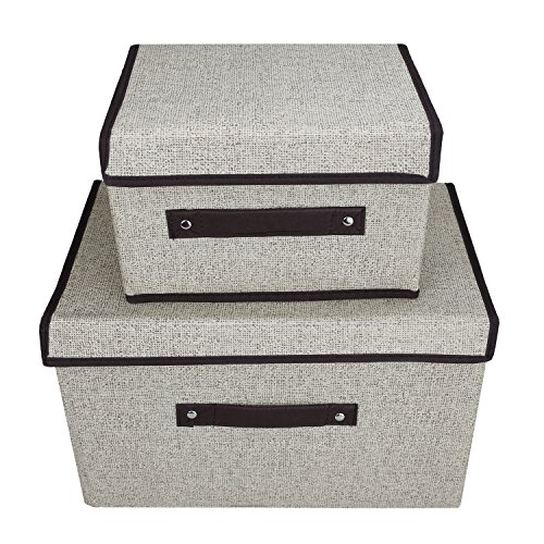 Topgalaxy.Z Polyester Canvas Storage Boxes with Lift-Off Lid, Foldable Tufted Linen Storage bin & box.Pack of 2 (White Beige)