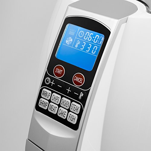 Features 8 built-in programs including frying chips, meat, chicken, steak, shrimp, fish, warm-up and manual use; Features digital LCD display and control panel