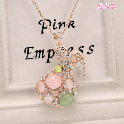 Korean version of the long section of diamond pendants female clothing accessories crystal opal pendant sweater chain necklace jewelry