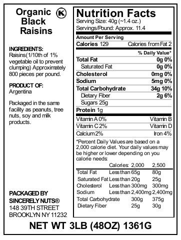 Sincerely Nuts Organic Black Raisins 3 LB