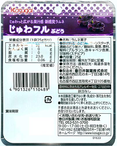 原材料:ぶどう糖、コーンスターチ、濃縮ぶどう果汁/酸味料、重曹、香料、糊料(プルラン)、赤キャベツ色素、甘味料(ステビア)