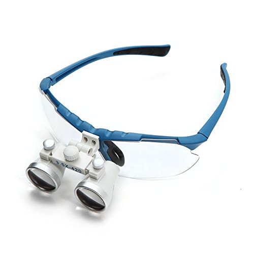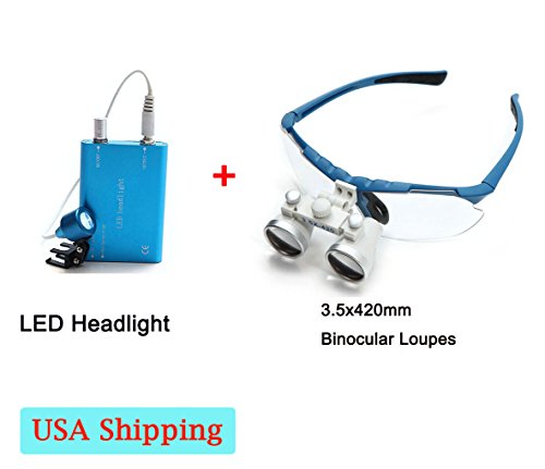 Zinnor (Shipping from US) Dental Surgical Medical Binocular Loupes Optical Glass Loupe 3.5X 420mm + LED Head Light Lamp (Blue)