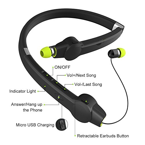 SUPERSUN V4.1 Bluetooth Neckband Headphones, Bluetooth Sport Headset with Retractable Earbuds for iPhone, Phones, Computers, Android and More