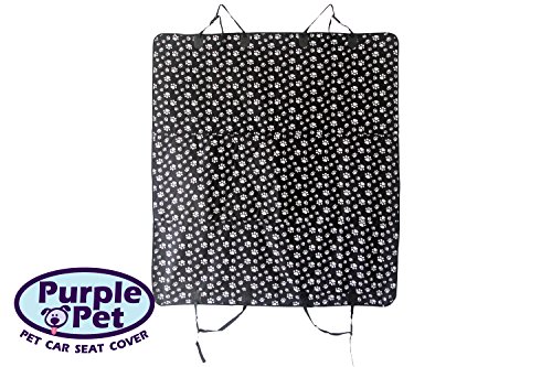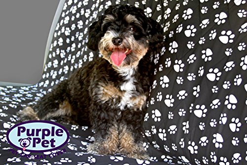 Pet Seat Cover by Purple Pet | Seat Anchors for Cars, Trucks & SUV"s | Black & White Design | lFull Warranty- This is a great product and was designed for even the biggest of Dogs. We offer a 2 year warranty on this product. If anything breaks or wears out for whatever reason you can get a brand new one at no cost. Easy to Install- With just a few simple straps you are in business. Waterproof- This is a quality feature. Our Waterproof Polyester ensures that your seat will be protected. Durable & Comfortable- Built and designed for the biggest Dogs, this Dog Hammock comes with a heavy duty three layer fabric. Includes extra padding so it is comfortable for your Pet.No More Hair- Trying to vacuum up pet hair in your car is the worst. This Pet Seat Cover by Purple Pet controls and contains the loose hair making it easy to clean away.Feature
