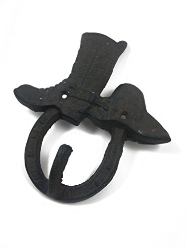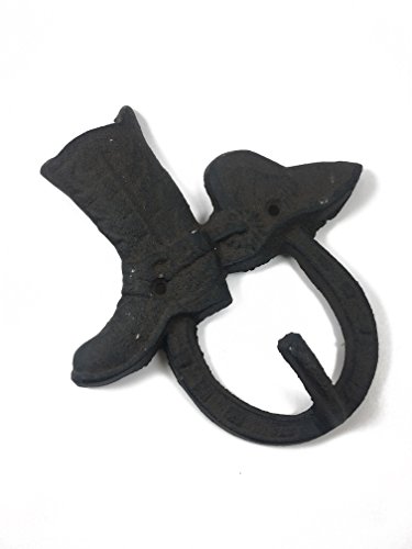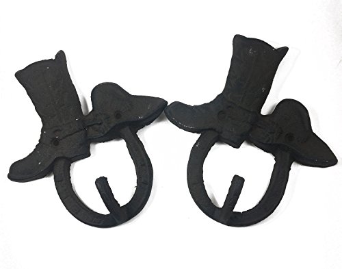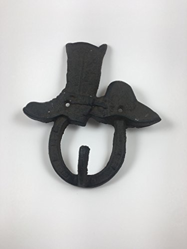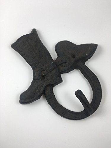 Set of 2 Hat & Boot w/Horseshoe Cast Iron Hook, Shabby Chic Vintage Wall Mounted Hooks, Excellent for Coats, Bags, Hats, Towels, Scarf’s and more by Ashes to Beauty