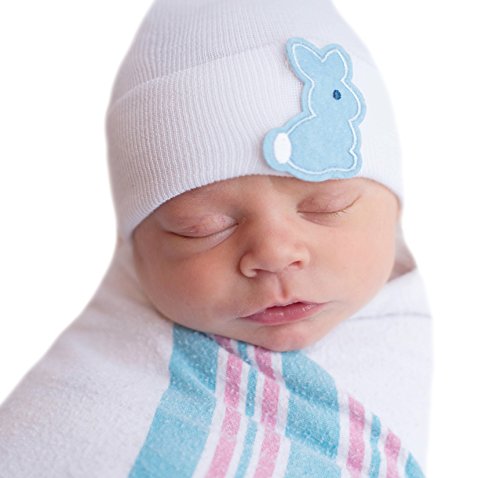 Melondipity Baby Hat Blue Bunny Patch Newborn Boy Hospital Hats