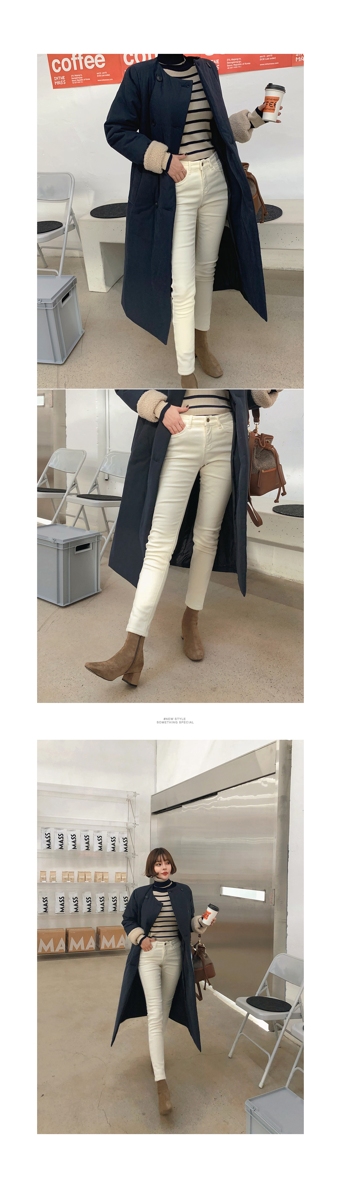 MD COMMENTFW시즌 꼭 소장하셔야 할 기모 스키니 팬츠를 소개할게요!신축성 좋은 소재감으로 활동성은 물론-편안한 착용감까지 선사해드리는 아이템인데요.도톰하고 부드러운 기모 안감이 더해져 있어 한 겨울에도 따뜻하게 착용하실 수 있구요.발목까지 타이트하게 핏되는 스키니 라인으로날씬해보이면서 레그 라인이 길어보이는 효과를 가져다줘요^^깔끔하고 베이직한 디자인으로 유행을 타지 않아하나쯤 소장하신다면 매년 꺼내 입기 좋구요.변형 없는 면 혼방 소재로 오랫동안 즐겨입기 좋아요!심플하게 제작되어 다양한 상의와 두루두루 잘 어울려FW시즌 데일리하게 즐겨입기 좋은 아이템으로 추천드려요.COLOR/SIZE아이보리,블랙,차콜,카키S,M,LMODEL FITTING아이보리,블랙/S