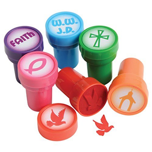 Have a little faith with this self inking religious stamper. Featuring a cross, fish, dove, church, and the words FAITH & WWJD, this self-inking stamper is great for arts and crafts projects. Use the stampers to decorate a scrapbook, greeting card, picture and more. Lot of 6Feature