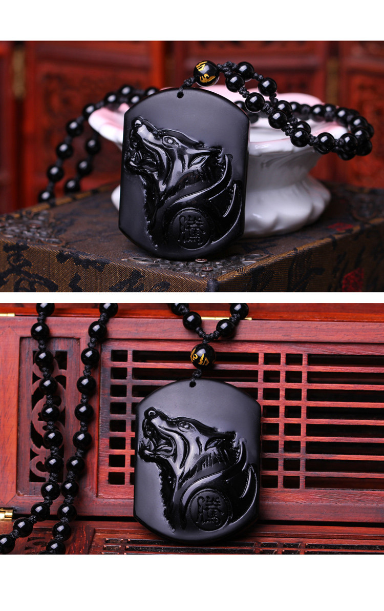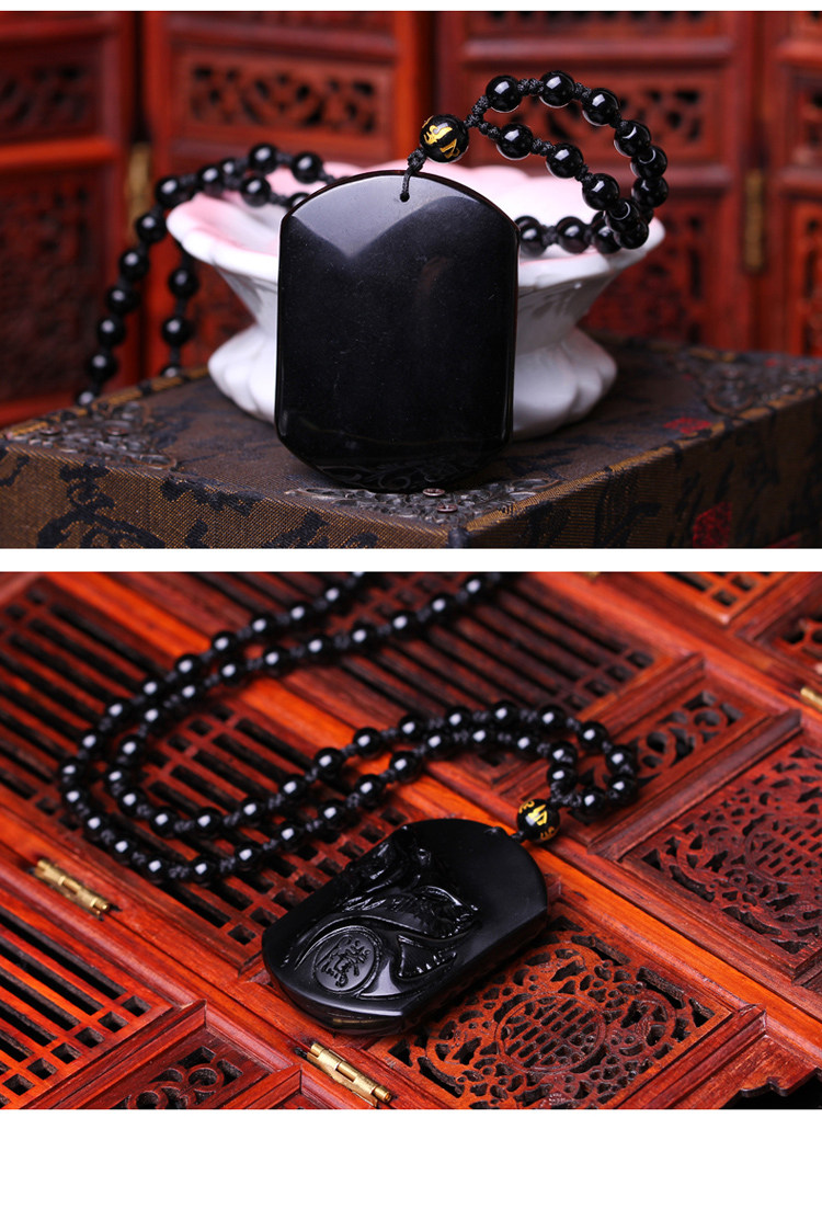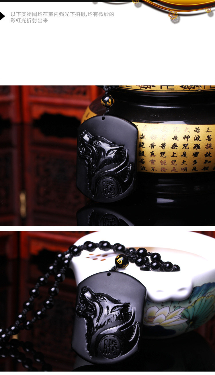 属马人吉祥物吊坠瑞犬聚宝黑曜石挂件水晶饰品 鸿福临门