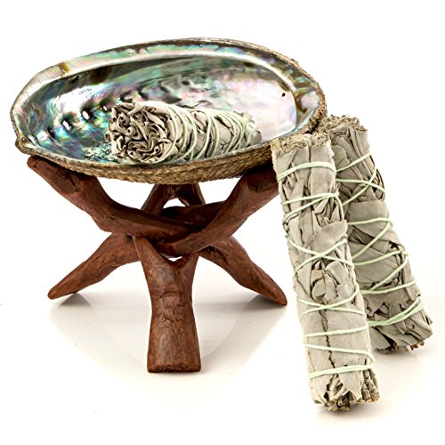 A stunning green abalone shell is the perfect place to hold your sage before, during, and after smudging. A elegant, hand-carved wooden tripod stand completes this value priced bundle of our most popular products.