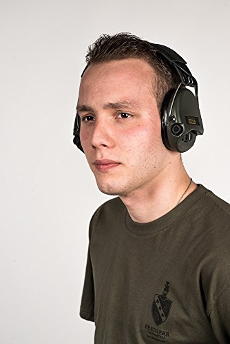 MSA Sordin Supreme Pro X - Standard Edition - Electronic Earmuff with black leatherband, green cups and foam seals fitted