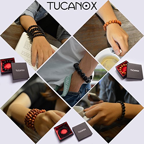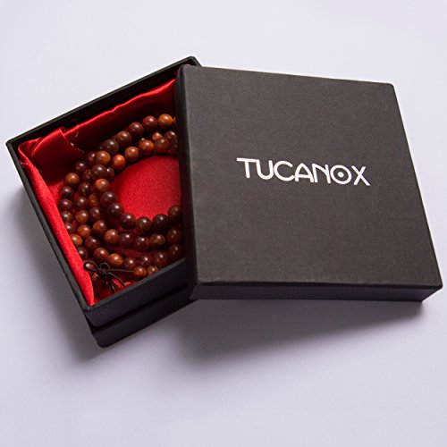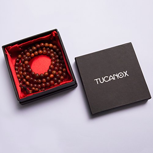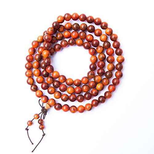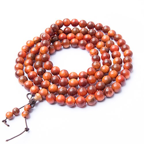 Tucanox Natural Dragon Blood Wood Round Rosary Bead Stretch Bracelet - 108 Japa Mala Beads Tibetan Buddhist Prayer Chain Necklace for Men & Women - 108 beads (8mm)