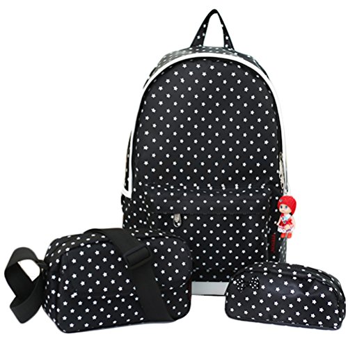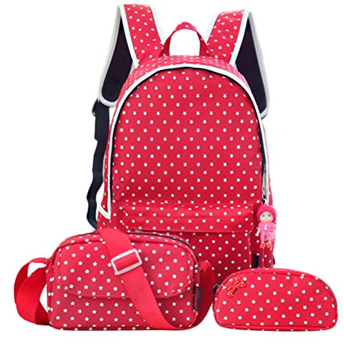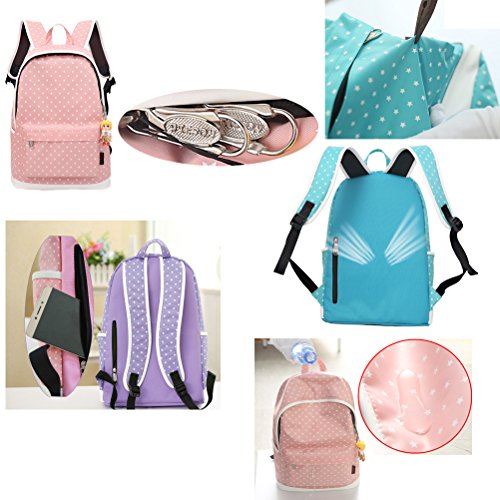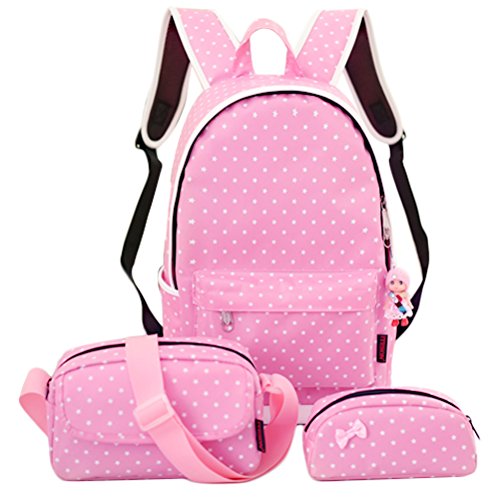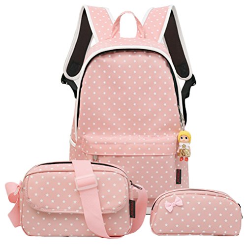 -. Brand : Samaz -. Department : girls -. Feature : High quality students school backpack set, travel hiking backpack, including one laptop bag, one messenger satchel bag, one pencil case, one cute pendant as gift / Made of waterproof Nylon, washable and wearable for long term use / This high volume backpack can accommodate a 15 inch laptop computer, roomy for middle school, high school, college students / Unique design straps ease the pressure on the shoulder, and The cushion with high permeability material, have never cover the sweat when you carry it a long time. / Great for casual day use and for students going to school & college. Fashionable and super cool. Perfect gift for you and your friend. -. PackageQuantity : 1 -. ProductGroup : Apparel -. ProductTypeName : LAGE -. Size : One Size -. Title : 4Pcs Little Bow Kids Book Bag School Backpack Cute School Bags for Teen Girls