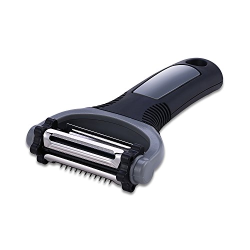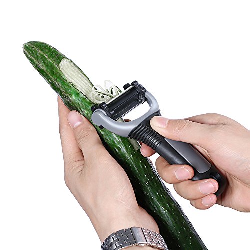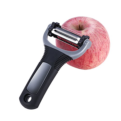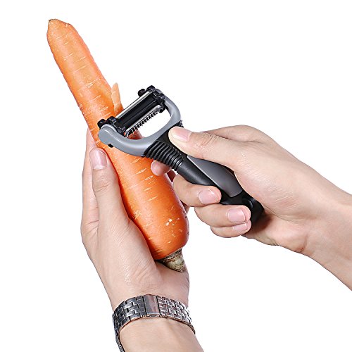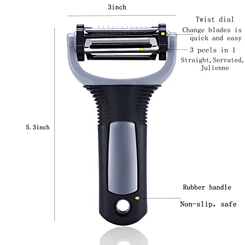 3 in 1 Multifunctional Julienne Vegetable Peeler with Rotating Serrated Straight and Julienne Stainless Steel Slicer Blades