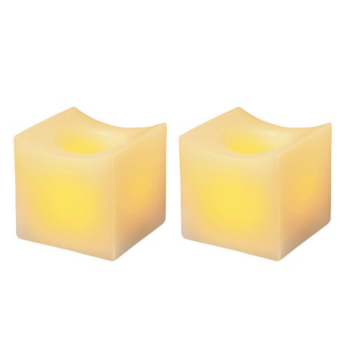 Inglow CG24103CR201 Flameless Mini Curved Squares Vanilla Scented Candle, Cream, 2-Pack