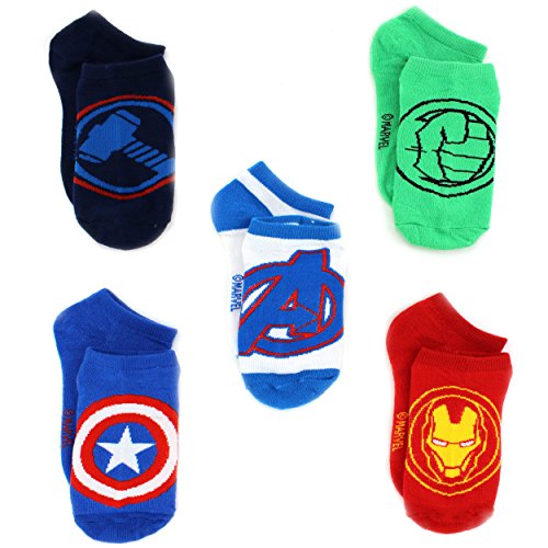 -. Binding : Apparel -. Brand : Marvel -. Department : boys -. Feature : Sock size 6-8 fits shoe size 10.5 M US Little Kid - 4 M US Big Kid / Sock size 9-11 fits shoe size 4 M US Big Kid -10 M US Womens / High quality novelty no show or low cut style sock sets / Features Marvel Comic's The Avengers Characters: / Iron Man, Captain America, Thor, and The Hulk! -. PackageQuantity : 1 -. ProductGroup : Apparel -. ProductTypeName : SOCKSHOSIERY -. Size : 12-24 Months -. Title : Avengers Boys Teen 5 pack Socks