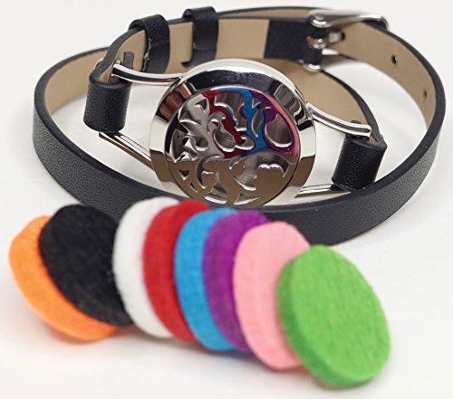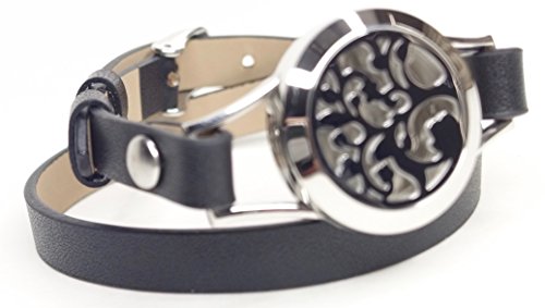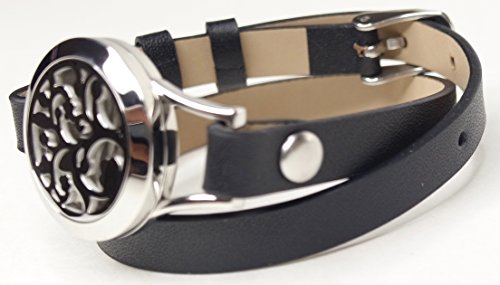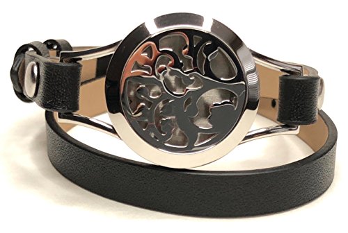 Smarts Gear Ava Essential Oil Diffuser Bracelet Aromatherapy Stainless Steel Locket Diffuser Double Genuine Leather Wrap Wristband with 8 Cotton...