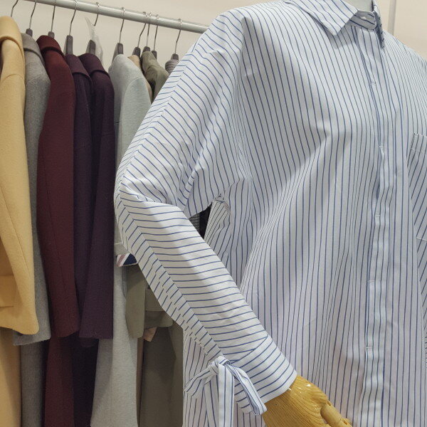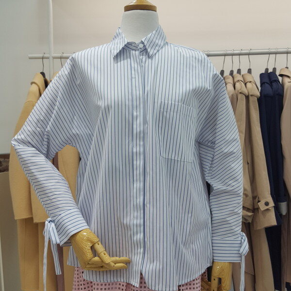루즈핏의 스타라이프 블라우스예요 날씬해보이는세로스트라이프 패턴입니다