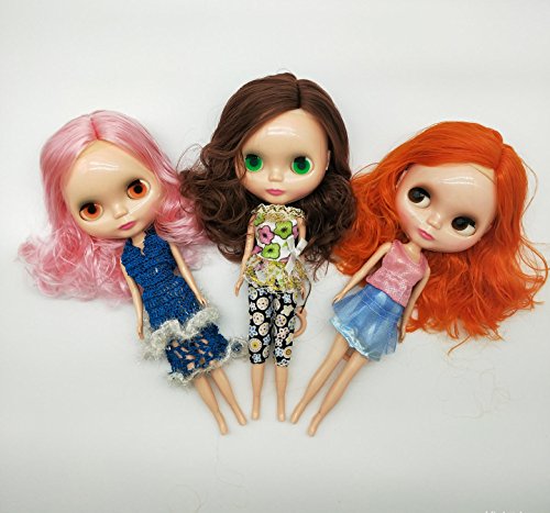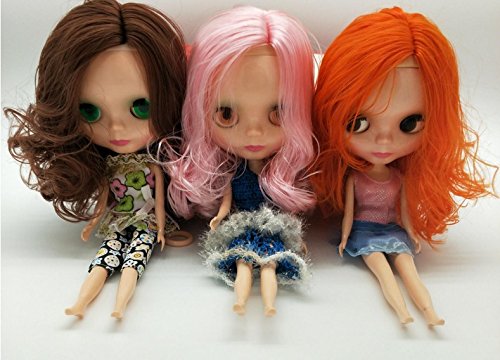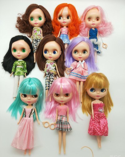 -. Feature : 4 color eyes changing doll like blythe style: It have a string on back of the big head the eyes color changed once you pull it with O rings. It is a exciting experience when you see her eyes change to red color,gray,black or green! / A similar blythe style clone, 12inch tall, 3.5inch big head,4 color big eyes and slim body. BJD/SD doll: The doll limbs and waist joints could be 360 degree rotating. You could let her stand with clear plastic stand holder, or let her sit down freely. / It have a good playing experience for its unique design. Good for pretend mommy play games and change clothes games for kids. Good dolls for 3+ year old girls as gift and dress up toys. As its cheap price, people aslo buy her to customize their own style doll, cut a nice hair style, or modify its dressing. It also could be a customize doll. / Doll Set with gift box: 1 doll with her clothes,1 additonal outfit. 1 pair of high heel shoes. 1 clear plastic holder to stand doll. / Note: The blythe style doll comes with long hair no bangs. Somes are straight hair, some are curly hair. No bangs blythe style doll will see scalp gap on forehead. Hair colors available are: gold,orange,light brown,dark brown,turquoise,yellow,blue,pink,black,white,lilac...the doll's hair and clothes style have to be shipped by random.