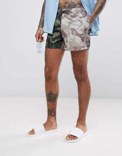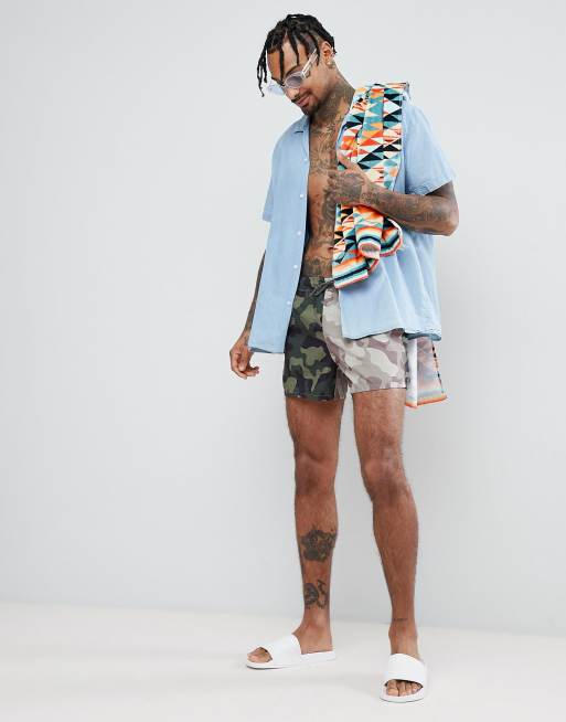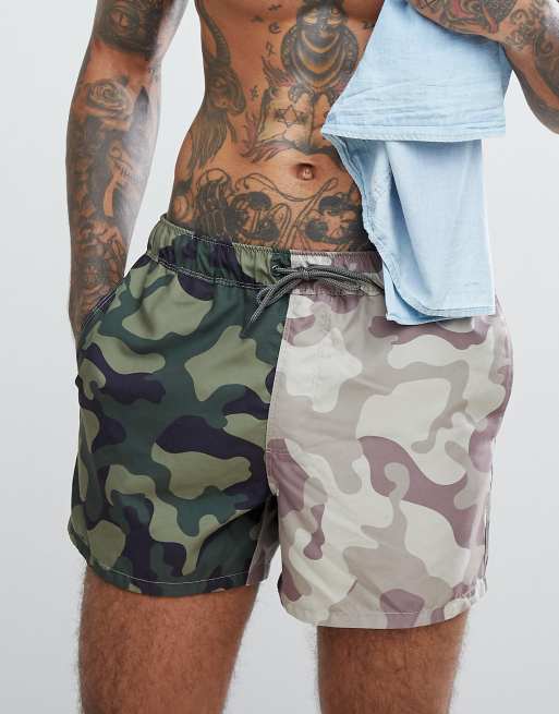Short length swim shorts by ASOS - Cut-and-sew camo print